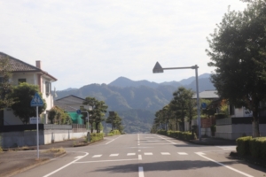 日常が何気なく大事に思えるようになって久しい。毎日1時間ほど歩き、たくさんの種類の食べ物を摂り、根菜類主体の野菜スープや甘酒を飲む。一度体調を崩しかけてから、出来るだけ仕事量を減らし、充分に寝る、そんな何気ない日常がとても大切に思えるようになった。腰を痛め、前立腺肥大の生体組織検査をしたり、手術で入院したりすると、ますますその思いが強くなっている。退院してだいぶ経つがそんな日常をすっかりは取り戻していない。今日は、まず1時間ほど歩こうとでかけた。家から少し東の大きな道に出ると、加江田の山の遠景(↑)が待っている。
