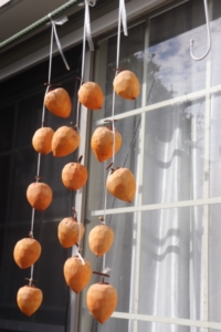 先週は雨の日が多かったので、去年の悪夢(→「柿干せど」、2024年10月23日)が蘇らないかと心配だった。雨が続いて、干しても、虫や蛾が群がり、乾かないままぼとりと落ちてしまった。悪臭といい、ぼとりと落ちる光景がまだ目に残っている。生り年で500個余りも生ったのに、全滅だった。今年は生り年の翌年なので生らないものと思っていたが、どうやら100個ほど生っているようである。500個にくらべて、一つ一つの実も大きい。15個は干して吊るせている。残りの柿を剥いて、干せるのを祈るばかりである。