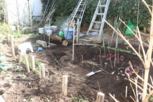 その庭の半分に海岸から砂を運んで、いっしょに住むようになったラブラドールのためのドッグランにした。もう半分はその前に住んでいたところの畑の黒土をわけてもらって畑(↓)にしてしまった。ラブが亡くなったあと、しばらくそのままだったが、今は全部畑に変わっている。かなりの土を運んだ。中央の花壇は取り払い、植えてあった樹は北東のあまり陽が当たらない場所に植え替えた。申し訳ないと思ったが、樹は勢いを盛り返し、きれいな花を毎年咲かせている。虫にやられかけて、一部の枝が枯れてしまったが、辛うじて生きている。