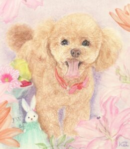 “メリーちゃんとクリスくん”というとても可愛い犬ちゃんたちの6号の絵で、3月24日にようやく完成しました。